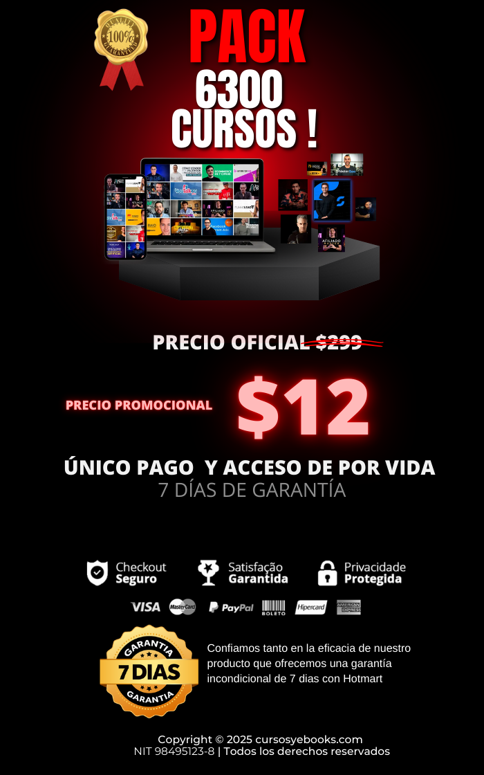 ✩Recibes + 15,000 libros PDF, + 3,300 audiolibros en BONOS + 6,300 cursos online en temas de Negocios, Ecommerce, Marketing Digital, Ventas, Emprendimiento y Desarrollo Personal que engloba aprender diferentes habilidades..